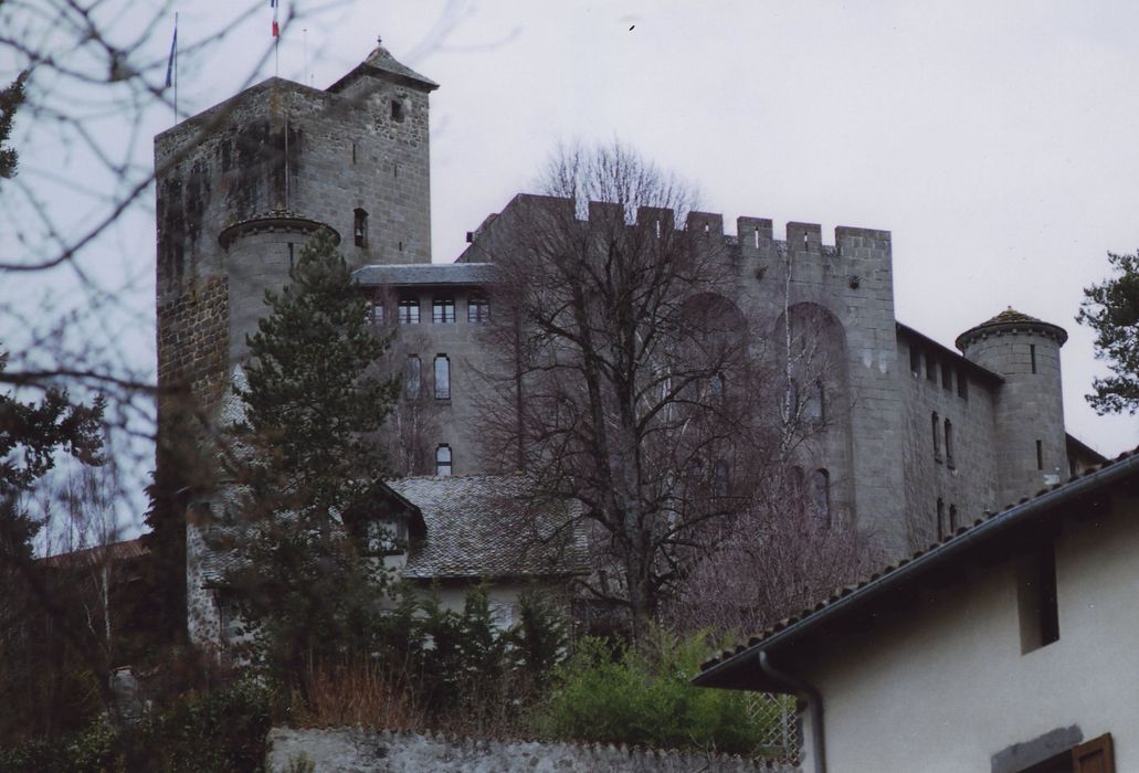 Au 9ème siècle, un premier château composé de bâtiments et d'enceinte en bois dressait ses élévations sur un tertre situé au-dessus de la vallée. Une petite agglomération vit le jour sur la pente sous le château ainsi qu'une petite église Saint-Clément. En 894, l'abbaye Saint-Pierre est fondée par le fils et désormais seul occupant du château Saint-Etienne. C'est autour de cette abbaye que naîtra la future ville d'Aurillac. Très pieux, il légua, à sa mort, sa demeure et une partie de ses possessions aux moines de son abbaye.£Devenue résidence de l'Abbé, le château fut l'objet de divers remaniements, voire reconstructions en conséquence des dévastations et révoltes auxquelles il fut exposé. En 1569, Mgr de Noailles, abbé d'Aurillac et évêque de Saint-Flour, initia une nouvelle reconstruction suite aux ravages menés par les Huguenots. L'oeuvre fut réalisée sur les bases d'un nouveau plan, au-devant du donjon demeuré intact avec son chemin de ronde à mâchicoulis. Ce château, avec ses tours rondes coiffées en poivrière et au donjon réduit de 12 mètres, fut vendu comme bien national au cours de la Révolution. Suite à un incendie en 1868, l'architecte Juste Lisch fut chargé de rebâtir le château et de lui donner son aspect actuel. Donnant sur la ville, on distingue une haute façade à arcatures dominée par le donjon. Cette partie abrite actuellement le Centre Permanent d'Initiation à l'Environnement. Côté esplanade, est implanté un bâtiment en longueur semblable à une caserne. Cette partie est aujourd'hui occupée par le Musée des Sciences de la ville d'Aurillac.