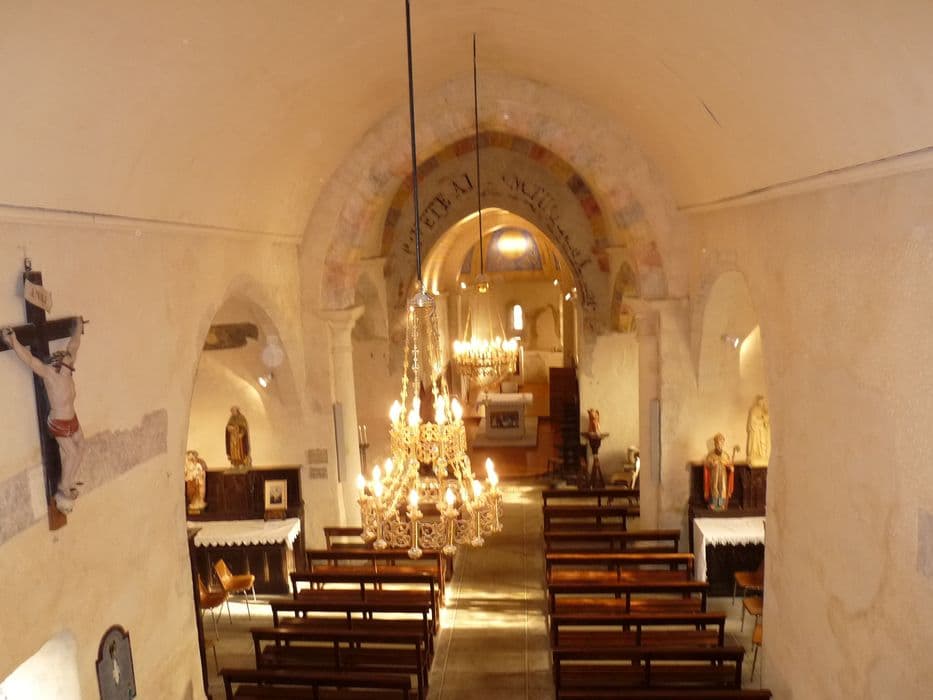 Eglise romane constituée d'une seule nef avec un choeur en cul-de-four orné. Au 15e siècle, deux petites chapelles ont été ajoutées pour former un genre de transept. A une époque plus récente, la même disposition fut reprise en doublure. Le porche occidental est souligné par un bandeau décoré. La fenêtre centrale de l'abside est couverte d'un linteau monolithe en forme d'arc.