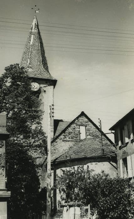 Eglise rurale ayant conservé un choeur d'époque romane. La nef a été remaniée postérieurement. Deux chapelles latérales formant faux transept lui ont été accolées au 16e siècle. La nef communique avec le choeur par un arc doubleau brisé reçu sur colonnes engagées sur dosserets, par l'intermédiaire de chapiteaux sculptés (feuillages, griffons). Le choeur, en forme d'abside à cinq pans coupés, est couvert d'un cul-de-four porté sur cinq arcatures en plein cintre dont les colonnettes sont surmontées par des chapiteaux aux corbeilles également sculptées de deux rangées alternées de feuilles lancéolées au-dessus desquelles s'enroulent des volutes.