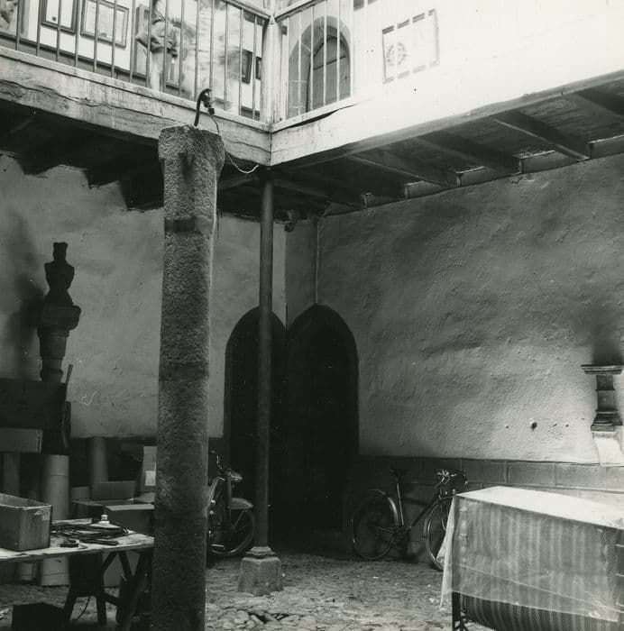 Maison fondée au 14e siècle, formant quadrilatère fermé autour d'une cour intérieure. Le rez-de-chaussée et le premier étage que dessert une galerie en bois, s'ouvrent sur la cour par une série de portes. Le premier étage du logis, formant le côté sud, est occupé par une grande salle au décor de boiseries 18e siècle, dissimulant une ancienne cheminée monumentale de l'époque gothique à frise-chapiteau de feuillage. Au rez-de-chaussée de la façade extérieure nord s'ouvre un portail précédant un porche donnant accès à la cour intérieure. Son arc de tracé brisé est à plusieurs voussures garnies de tores retombant sur des colonnettes par l'intermédiaire d'une frise chapiteau à décors de crochets de feuillages. De chaque côté de la frise-chapiteau, un culot aux feuillages de même, reçoit un cordon d'archivoltes profilé en larmier. L'un des deux lourds vantaux qui ferment ce portail a conservé l'ancien heurtoir en fer forgé remployé, remontant au moins au 14e siècle.
