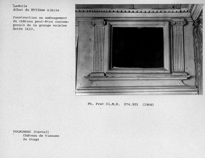 © Monuments historiques, 1992. Cette notice reprend intégralement les termes de l’arrêté de protection au titre des Monuments historiques. Elle répond à l’obligation réglementaire du ministère de la Culture d’établir la liste générale des immeubles protégés (art. R. 621-80 du Code du patrimoine). Elle est donc opposable et fait foi juridiquement. Aucune copie numérique ou papier ne sera fournie par courrier ni courriel. Le dossier de protection complet et l’arrêté sont consultables uniquement sur place, dans la salle de lecture de la Médiathèque du patrimoine et de la photographie (MPP), à Charenton-le-Pont (Val-de-Marne).