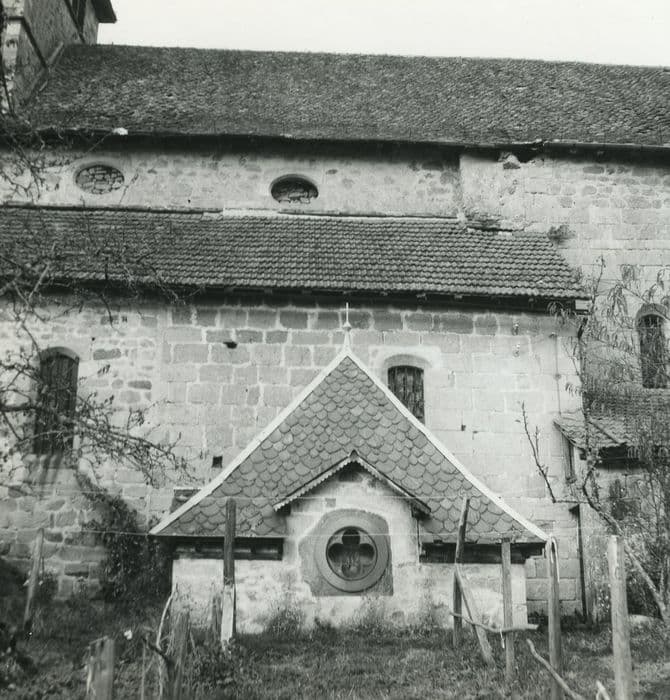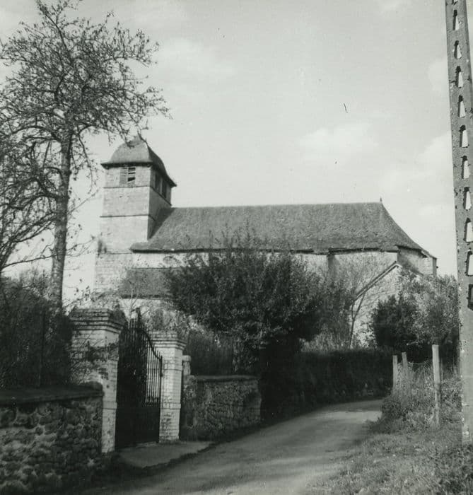 Eglise vraisemblablement construite au 13e siècle sur une crypte plus ancienne, puis modifiée aux 15e, 17e et 19e. Choeur du 13e siècle, voûté à la fin de la période gothique (15e siècle). Nef de quatre travées (refaite au 17e siècle) flanquées de chapelles latérales. Clocher-porche dont le portail porte la date de 1689, et évoque la première Renaissance. La crypte a été agrandie au 19e siècle. A la même époque, la nef a été couverte en fausses voûtes gothiques. En 1831, adjonction de la sacristie contre le flanc sud. Des vestiges de peinture murale apparaissent sous l'enduit du choeur et des chapelles latérales, datant probablement du 17e siècle.
