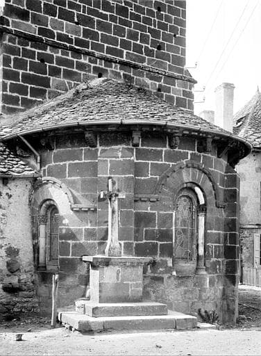 L'église est un édifice roman dont la façade présente une disposition exceptionnelle d'un arc et de deux demi-arcs retombant sur deux colonnes dont les chapiteaux et les bases sont richement sculptés. Au-dessus, un large oculus forme rose. L'abside est ornée d'une corniche à corbeaux sculptés et de trois fenêtres avec archivoltes à billettes et gros tore reposant sur deux colonnettes à chapiteaux et bases ornés. Intérieurement, l'église est entièrement voûtée en berceaux. Les deux premières travées forment nef, la troisième forme transept. Deux chapelles du 15e siècle y ont été ajoutées. La quatrième travée forme choeur et est située sous le clocher. Tous les arcs doubleaux séparant les travées sont supportés par des colonnes à chapiteaux et bases sculptés.££La chapelle du château, seul vestige de la forteresse, est un exemple parfaitement conservé de chapelle castrale du 12e siècle. L'édifice se compose de deux travées et d'une abside voûtées en charpente. Elle ne présente intérieurement aucun décor. A l'extérieur, portail avec quatre colonnettes aux chapiteaux et bases sculptés.