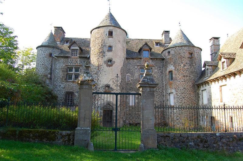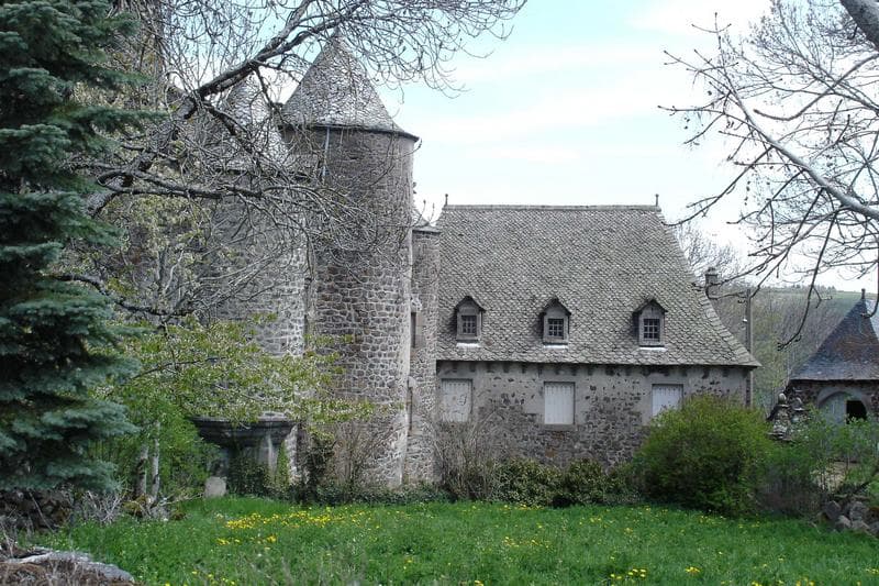 La seigneurie existe dès le 11e siècle, dépendant de la vicomté de Murat. Confisquée à J. de Nemours, décapité en 1477, donnée à Jean de L'Isle, elle est rendue au duc de Nemours par le roi. Elle échoit à Pierre de Bourbon mais, confisquée au connétable et annexée à la couronne, elle entre plusieurs fois dans l'apanage des reines douairières. En 1641, Louis XIII l'attribue à Honoré de Grimaldi. Au 11e siècle existait une forteresse beaucoup plus importante que l'actuel château, dont subsistent quelques fondations, détruite en 1360 par Jean Chandos, lieutenant du roi d'Angleterre. Le château actuel paraît avoir été construit au 16e siècle avec les matériaux de la forteresse et partiellement sur un élément de cette dernière, resté en place. Son plan est tel qu'à l'origine mais l'ensemble, à l'exception de la tour centrale (escalier) a été réduit d'un étage, sans doute au 18e siècle qui a vu la construction d'une aile et la mise en place de boiseries. La tour des archives, à l'arrière, a été rasée pendant la Révolution, époque probable du martellement de l'Annonciation du linteau de la porte de la tour centrale. Certaines fenêtres conservent des éléments de vitraux aux armes des Lastic (17e-18e siècle). La chambre du deuxième étage est ornée de papiers peints d'époque.