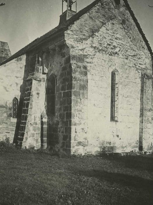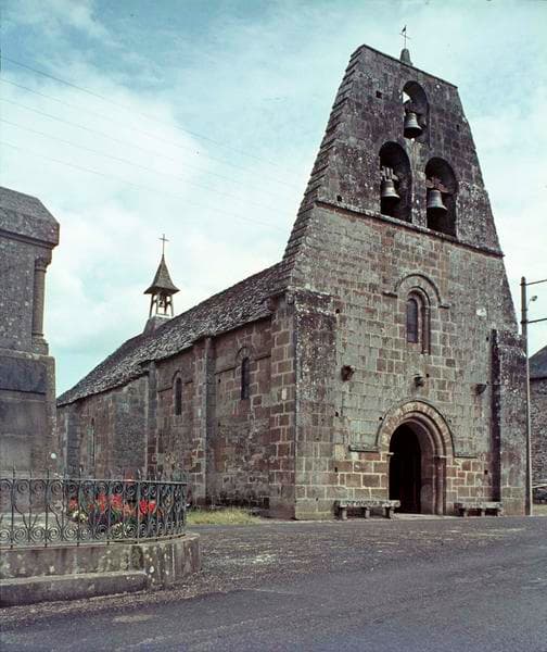 Edifice du 12e siècle remanié à diverses époques. La façade du 12e siècle présente un pignon contenant trois arcades pour les cloches, une fenêtre plein cintre avec colonnettes sculptées, un joli portail avec deux chapiteaux sculptés. Les trois travées de la nef sont du 12e siècle, elles sont voûtées en berceau et séparées par des doubleaux reposant sur des colonnes à chapiteaux sculptés. Le choeur voûté également en berceau est séparé de la nef par un arc doubleau avec colonnes, il est terminé actuellement par un mur moderne remplaçant une abside détruite. De chaque côté du choeur ont été construites au 15e siècle deux chapelles et un troisième arc a été ajouté au nord.