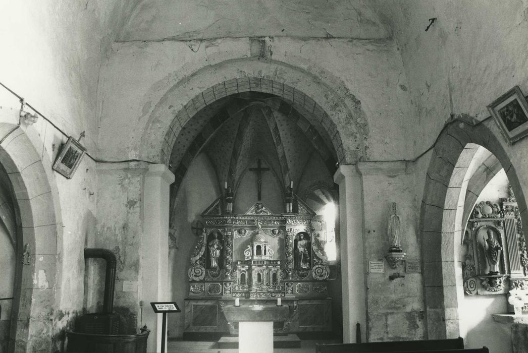 Petit sanctuaire rural comprenant une nef de deux travées, voûtée en berceau, et un choeur voûté d'ogives. L'édifice appartient, pour l'essentiel, à l'époque romane et a subi plusieurs modifications : les chapelles latérales sont du 15e siècle ; les voûtes du choeur du 16e ; le porche est du 17e. Le clocher-peigne à quatre ouvertures date probablement de l'époque gothique. Frappé par la foudre en 1903, il a été restauré à l'identique. Le porche sud est un ajout de date récente.