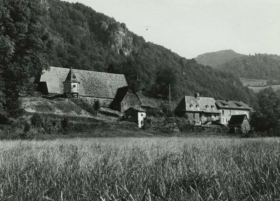 Première mention de la Prade au 14e siècle (1363). Grange datée de 1768, représentant un jalon important dans l'architecture vernaculaire de Haute Auvergne. La maison Est porte la date de 1868, date de la première surélévation. La seconde surélévation fut effectuée aux environs de 1940. L'ensemble comprend la grange-étable, le pigeonnier, deux maisons d'habitation accolées, une porcherie, un poulailler et un hangar. Le pigeonnier, qui est le bâtiment le plus intéressant, a la forme d'une tour hexagonale sur piliers. Le moulin a disparu, ainsi qu'une maison située en contrebas au sud. Permanence des volumes depuis 1840, malgré quelques transformations dans les couvertures.