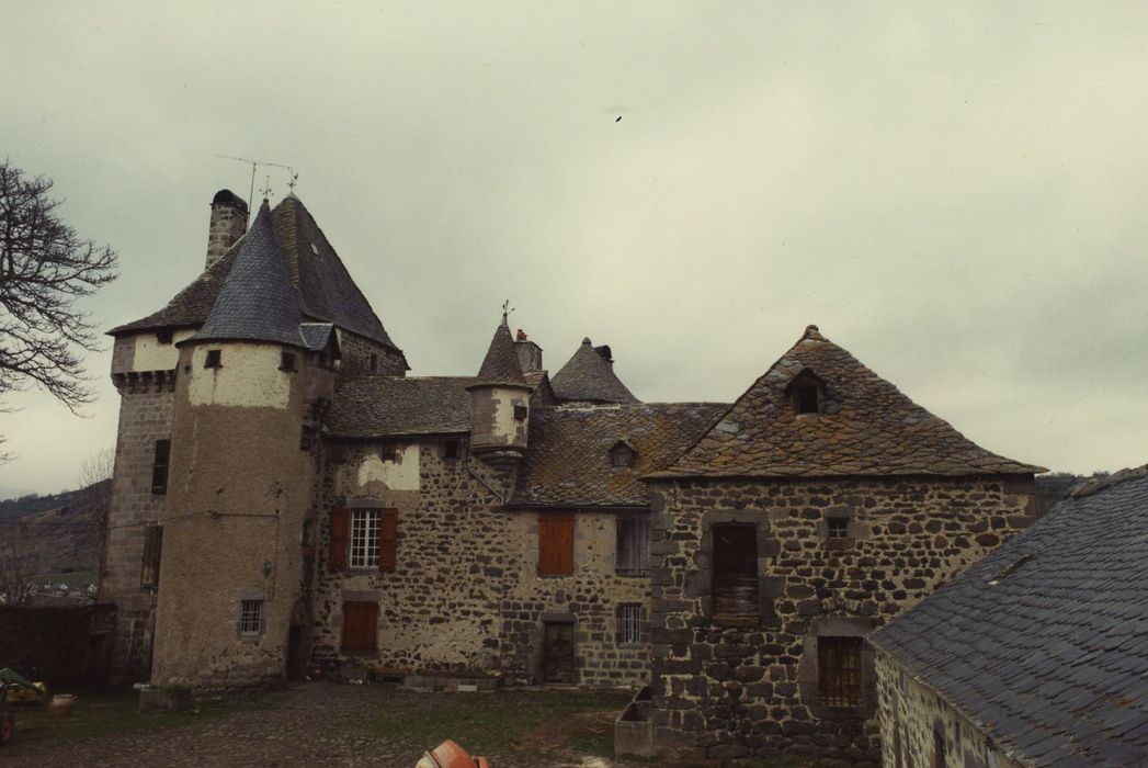 Le donjon primitif carré domine sur l'angle sud-ouest, les restes des constructions qui s'ordonnent autour d'une cour d'honneur située au sud. Ces bâtiments semblent correspondre à deux campagnes distinctes. Un corps de logis allongé (16e siècle) , adossé contre la face Est du donjon, flanqué par une tour ronde à l'angle nord-est, par une échauguette en encorbellement au sud-est, et par une tour d'escalier à l'angle sud-est. La deuxième campagne de travaux (17e siècle) englobe un bâtiment en L dont la petite barre s'élève dans le prolongement du logis précédent. L'aile en retour d'équerre s'allonge de façon à fermer le côté Est de la cour d'honneur. Le donjon présente un chemin de ronde couvert sur mâchicoulis ; sa face nord est percée de baies médiévales et sa face sud de baies repercées au 17e siècle. La tour d'escalier est percée d'une porte gothique dont le tympan est frappé aux armes de la famille Sauret. L'aile en retour d'équerre comporte des chambranles moulurés du 16e siècle (arcs en accolade) qui pourraient être des remplois. Dans la chapelle, le plafond lambrissé est peint. Divisé en cinq caissons aux bordures et frises dessinées, ce plafond comporte cinq scènes figurées : Dieu le Père au centre, et les quatre Evangélistes sur les angles. Sur les murs, scènes champêtres encadrées de motifs végétaux.