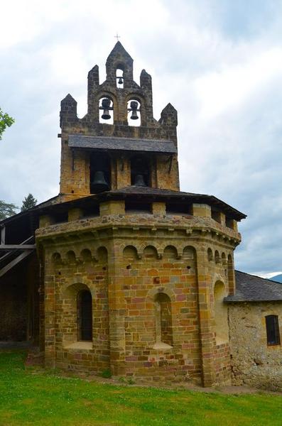 Ancienne chapelle du château des comtes de Comminges. L'édifice appartient à la fin du 12e siècle, hormis une travée ajoutée à l'ouest au 15e siècle. La porte d'entrée primitive est au sud, abritée sous un porche moins ancien. Elle se compose de trois rangs d'archivoltes et de six colonnettes dont la sculpture est intacte. A droite de la porte se trouve une niche carrée contenant la statue en bas-relief de Saint-Pierre assis et bénissant. Toute la chapelle a été surélevée et crénelée. Le clocher présente des arcades placées 2-2-1. Les deux arcades du bas sont cantonnées de colonnettes. Le premier étage est couronné par un rang de petites arcatures sur corbelets et par un crénelage composé de quatre merlons à chaperon incliné. Au deuxième étage, le mur laisse, à l'ouest, une galerie dont les eaux sont emmenées par deux gargouilles. Le troisième étage ne comporte qu'une arcade avec colonnettes.