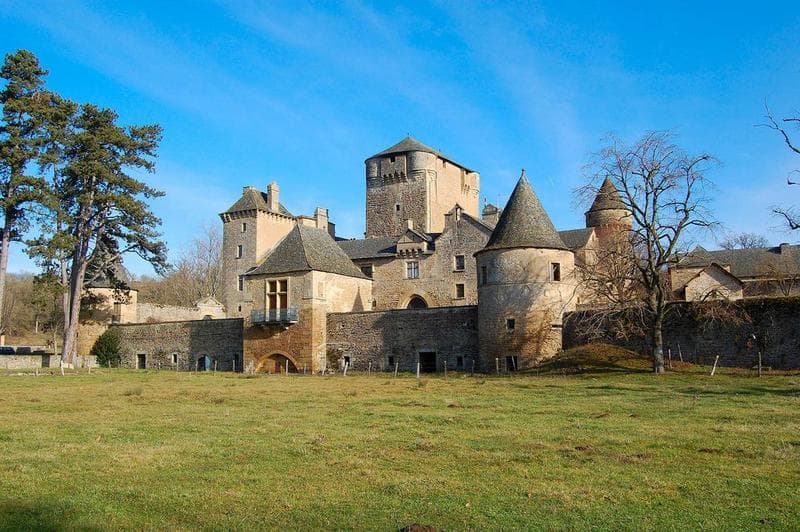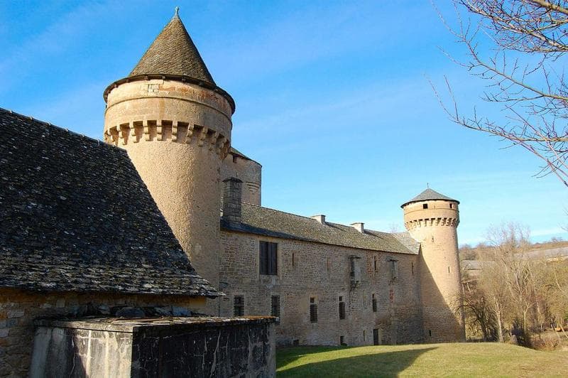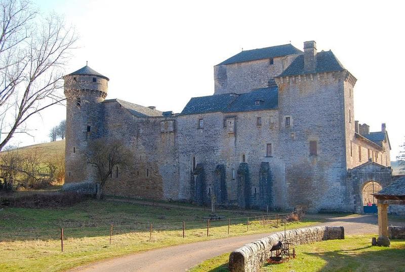 En 1273, la terre et son château ont été donnés par les comtes de Rodez à la maison d'Aubrac. Ancienne demeure fortifiée féodale, demeure du cardinal d'Armagnac, dont l'appareil militaire a sans doute été amputé de divers éléments, mais dont l'essentiel des dispositions demeure. Les dispositions d'origine se lisent parfaitement. Le château était composé d'un donjon rectangulaire du 13e siècle, remanié au 14e, et d'un corps de logis accolé sur sa face ouest, un mur de courtine flanqué de quatre tours d'angle délimitant une cour intérieure. Dans son état actuel, l'ensemble date du 14e siècle. Des aménagements datent du cardinal d'Armagnac, tels que le portail portant une inscription datée de 1546, et la galerie intérieure. Chapelle du 15e siècle voûtée en ogive. Les salles intérieures ont conservé leur poutraison et cheminée, ainsi que certaines pièces de mobilier. Devant la façade nord du château se trouve une croix de carrefour, datée de 1579.