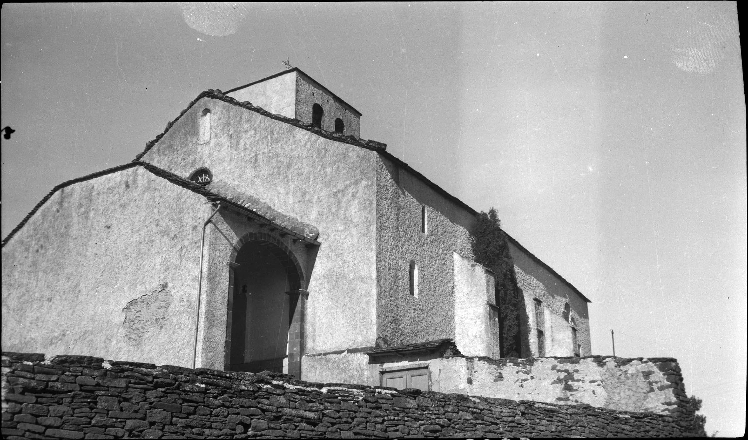 Le village fut fortifié au Moyen-Age. L'église faisait partie du front Est qui barrait l'isthme isolant le promontoire fortifié. Dans son état primitif, au 12e siècle, elle devait présenter trois nefs avec une abside et sans doute un transept à bras non saillants. L'église fut ruinée sans doute pendant la guerre de Cent ans, et reconstruite en 1393, les trois nefs étant remplacées par une seule avec de grands arcs doubleaux portant la charpente. Le lambris doit est un ajout postérieur à cette époque. De la disposition intérieure primitive ne subsistent que les deux têtes de part et d'autre de l'abside, qui portaient la retombée des deux arcs latéraux portant la voûte de la nef principale. Deux chapelles et un clocher furent ajoutés sur la face nord, vers la fin du 15e siècle. Décoration romane au portail, entouré d'un cordon d'archivolte orné de feuillages et de dents de scie.