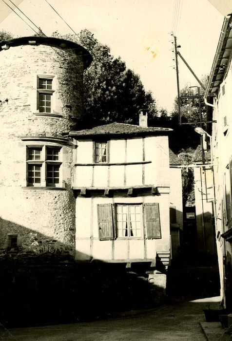 La façade principale de la maison est ornée d'une tourelle ouverte de fenêtres à meneaux.
