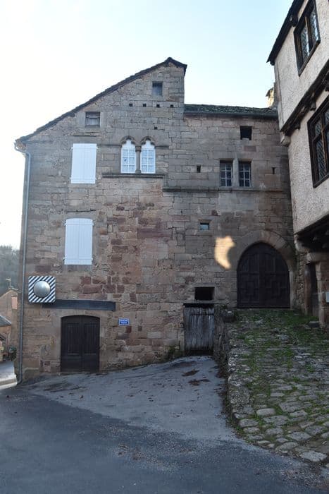 L'appareil semble révéler deux périodes de construction dans la façade. La partie gauche conserve une fenêtre géminée à colonnette centrale ; les deux arcs presque plein cintre sont ornés d'un trilobe. Sous cette fenêtre se voit la trace d'une baie rectangulaire murée. Sur la partie droite, une baie a perdu ses meneaux et a été agrandie dans le bas avec l'adjonction d'un balcon. Au-dessous s'ouvre la porte principale, en ogive. A sa gauche, une autre porte ouverte probablement au 16e siècle.