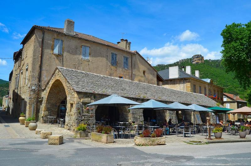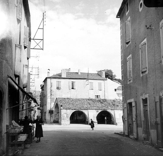 Les halles sont constituées par cinq travées de voûtes d'arêtes et forment une sorte de promenoir couvert. Les voûtes supportent directement une couverture de lauzes. Des contreforts maintiennent la poussée des voûtes.