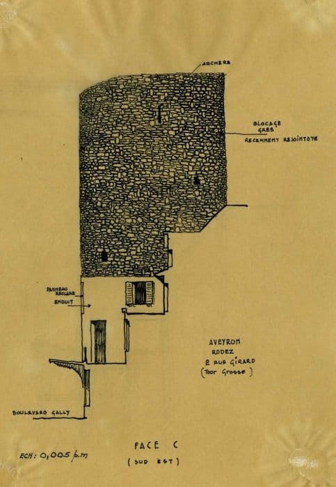 Cette tour fait partie de l'ensemble fortifié qui ceinturait toute la ville. Cette construction a été décidée après la bataille de Crécy et contre les bandes qui dévastaient la région. Elle commença en 1350 sur l'impulsion du sénéchal de Rodez qui en fit tracer le plan par des ingénieurs, en se servant des escarpements naturels. Les travaux durèrent dix ans, financés par le clergé. Tous les cinquante mètres, une tour flanquait l'enceinte. La Tour Grosse portait à son sommet une cloche. A l'intérieur, elle présente salles voûtées et coupole. La tour n'a plus sa hauteur primitive et son crénelage.