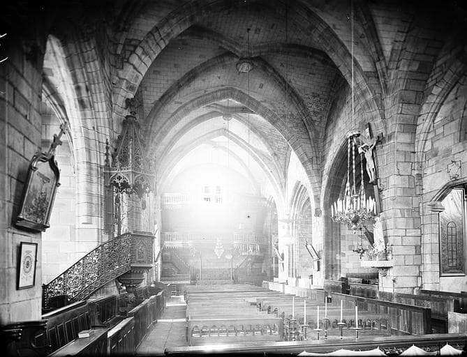 L'observation de l'édifice permet de constater qu'il est le résultat d'une série d'adjonctions consécutives, dont certains soubassements pourraient remonter à la fin du 14e siècle. Les architectes ont fait preuve d'innovation comme la forme triangulaire des contreforts du choeur, et la chapelle A, dont la voûte et la plate-bande à double clef, soit en cinq appareils, qui ferme la baie de communication avec la nef sont d'une conception originales pour l'époque. Les clés de la voûte représentent le Christ portant le globe du monde et bénissant les quatre Evangélistes. Deux chapelles et le porche pourraient dater de la fin du 15e siècle. Une autre chapelle remonte à la Renaissance. Le rapport de 1926 indique des traces de peinture au-dessus de la porte d'entrée, à l'intérieur du gâble.