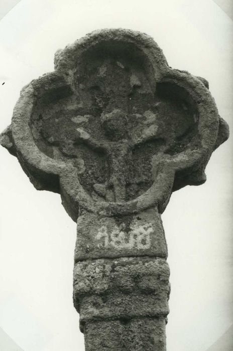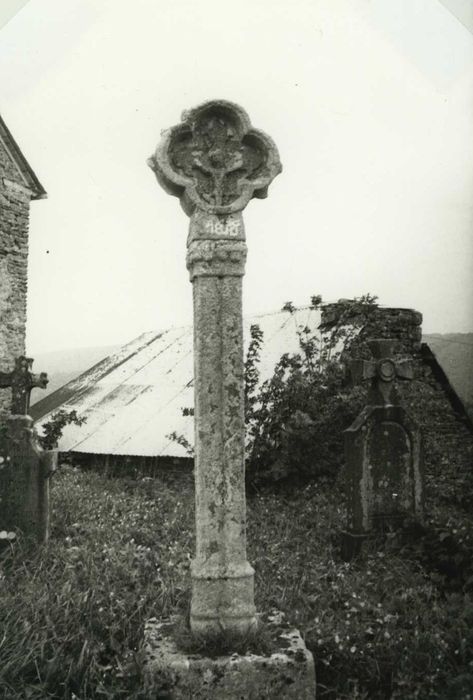 La croix est constituée de deux pierres. La croix elle-même, haute de 71cm, représente, dans un quatrefeuille, d'un côté le Christ en croix, de l'autre la Vierge à l'Enfant sous un dais, entre la lune et le soleil. Une deuxième partie présente une pyramide haute de 214cm. L'ensemble est fixé sur un socle en pierre en forme de table.