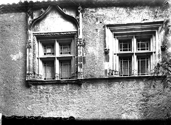 La façade est percée de trois fenêtres à meneaux cruciformes. La fenêtre médiane, de même architecture, est beaucoup plus riche, la gorge de la moulure formant encadrement extérieur, ornée de feuilles de chardon parmi lesquelles figurent des bêtes. Les deux côtés des piedroits à pinacles, au-dessus du linteau de la fenêtre, un arc en contre courbe, avec quatre crochets.