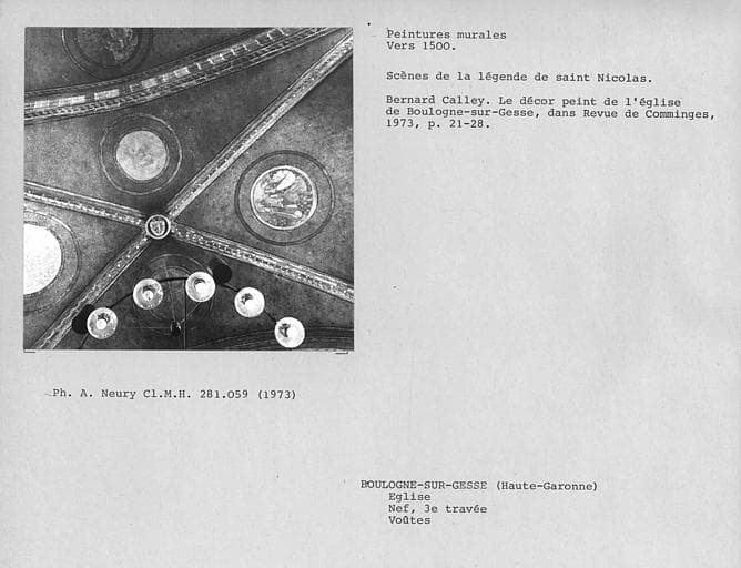 © Monuments historiques, 1992. Cette notice reprend intégralement les termes de l’arrêté de protection au titre des Monuments historiques. Elle répond à l’obligation réglementaire du ministère de la Culture d’établir la liste générale des immeubles protégés (art. R. 621-80 du Code du patrimoine). Elle est donc opposable et fait foi juridiquement. Aucune copie numérique ou papier ne sera fournie par courrier ni courriel. Le dossier de protection complet et l’arrêté sont consultables uniquement sur place, dans la salle de lecture de la Médiathèque du patrimoine et de la photographie (MPP), à Charenton-le-Pont (Val-de-Marne).