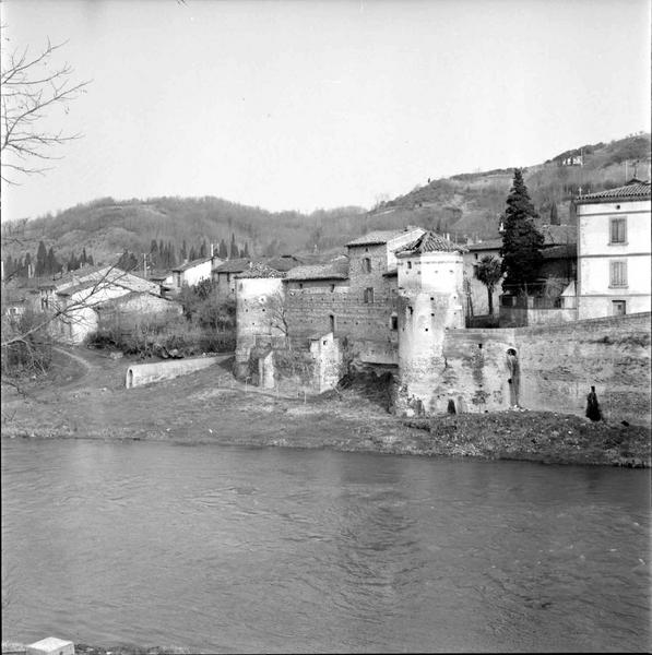 Construction en brique, épaulée aux angles du côté de la rivière, par deux tours circulaires dont l'une porte une construction hexagonale abritant un pigeonnier.