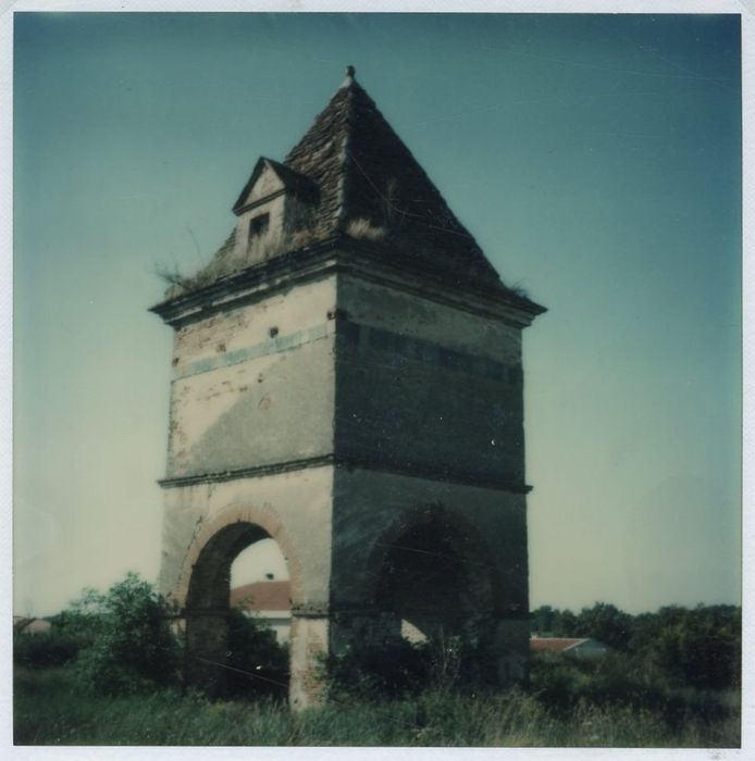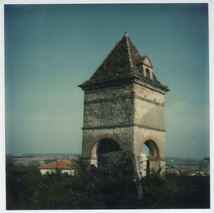 Les pigeonniers étaient très prisés dans le Midi toulousain, jusqu'au 19e siècle, la fiente de pigeon étant utilisée comme engrais. Jusqu'au 17e siècle, ils constituent l'apanage des châteaux ou des grandes propriétés dont ils se trouvent éloignés de plusieurs mètres. Au 18e siècle, ils sont plus nombreux mais toujours isolés. Ici, le pigeonnier est sur arceaux, avec un toit pyramidal à quatre pans. Double ceinture de défense : une corniche saillante au-dessus des piliers ; une bande en carreaux vernissés sous la corniche du toit.