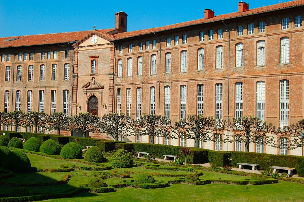 Vestiges du Pont-Vieux (sauf pile classée) ; à l'intérieur : ancienne pharmacie de l'aile Ouest ; double berceau de briques au rez-de-chaussée et chapelle des Soeurs au deuxième étage de l'aile transversale (cad. AD 320) : inscription par arrêté du 31 octobre 1986 ; Façades et toitures des bâtiments disposés en U autour de la cour d'honneur, y compris les façades sur rue et sur Garonne ; pile du Pont-vieux ; cour d'honneur ; à l'intérieur : escalier monumental de l'aile Ouest, salle des Colonnes (ancienne salle Saint-Lazare) de l'aile transversale, escalier d'honneur et son soubassement, salle des Pas-Perdus et chapelle au premier étage de l'aile Est (cad. AD 320) : classement par arrêté du 5 décembre 1988