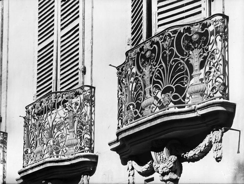 Cinq balcons en ferronnerie des fenêtres du premier étage (cad. AB 298) : classement par arrêté du 20 octobre 1971 ; Façade et toiture sur rue (à l'exclusion des parties classées) et escalier situé dans la cour intérieure (cad. AB 298) : inscription par arrêté du 22 octobre 1971