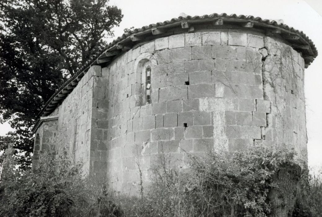 Porche d'époque romane, à triple voussure, au tympan orné d'un chrisme. Le clocher mur est percé de deux baies. Nef unique, sans chapelles latérales. Abside semi-circulaire. C'est le parfait prototype de l'église rurale gersoise.