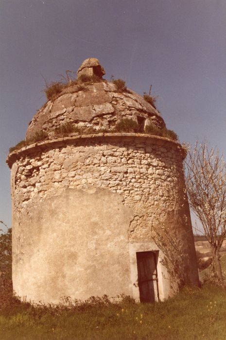 Pigeonnier cylindrique couvert d'une coupole hémisphérique qui s'élève au-dessus d'une corniche évidée. Un lanterneau couronne le dôme. Les murs intérieurs sont entièrement percés de boulins légèrement trapézoïdaux (400). Un larmier de pierre très saillant détourne les eaux de ruissellement des maçonneries et ferme l'accès aux rongeurs. Ce genre d'édifice voûté est assez rare.