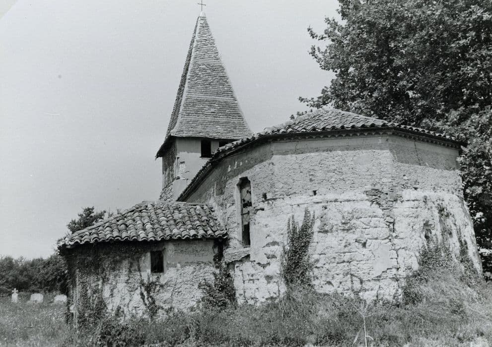 Petit édifice isolé dont les murs en torchis et briques crues ont été reconstruits au 18e siècle sur les bases romanes en pierre de l'église primitive, détruite au 16e siècle. L'église était autrefois liée à un prieuré et un château, incendiés en 1569 pendant les guerres de Religion. Le clocher est bâti sur une base en pierre sur laquelle est monté un étage de briques et de pans de bois.