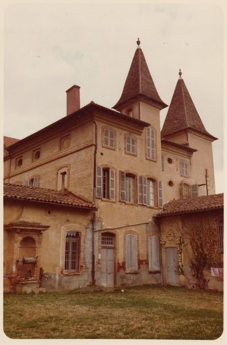 Château construit en 1697 par François de Pelegrin, gouverneur de samatan, sur l'emplacement d'un ancien édifice. La chapelle est construite en 1709, puis reconstruite en 1733. Au cours de la Révolution, le château fut entièrement pillé. En 1872-1873, le parc fut aménagé et le château subit des aménliorations permettant des conditions de vie plus agréables. L'édifice présente une disposition traditionnelle avec deux ailes en retour délimitant une cour. La façade nord est cantonnée de deux tours. La cour d'honneur est fermée au sud par un bâtiment en rez-de-chaussée, au centre duquel est ménagé un portail.