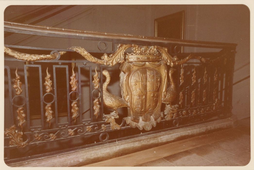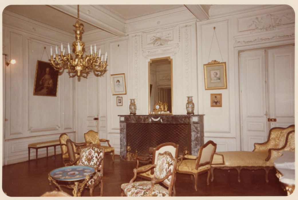 Façades et toitures, y compris la grille d'entrée ; l'escalier intérieur avec sa rampe en fer forgé ; les pièces suivantes avec leur décor : chapelle, grand et petit salons, grande salle à manger ; cheminées de la salle de billard et des chambres bleue, jaune et rouge (cad. AR 33) : classement par arrêté du 1er août 1974 ; Façades et toitures des communs ainsi que les deux pigeonniers (cad. AR 33) : inscription par arrêté du 1er août 1974
