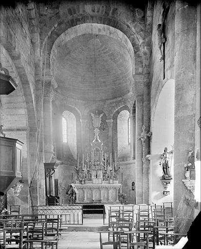 L'église se compose de deux travées de nef voûtées en berceau, une travée carrée primitivement voûtée en coupole sur pendentifs, surmontée d'un clocher. La voûte en coupole sous le clocher a été démolie et remplacée par un plafond moderne. Cette travée centrale est flanquée, à gauche, d'une chapelle avec voûte d'arête. L'édifice se termine à l'est par une abside en hémicycle, voûtée en cul de four. Tous les chapiteaux sont historiés.