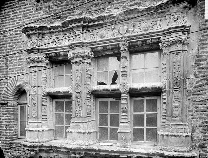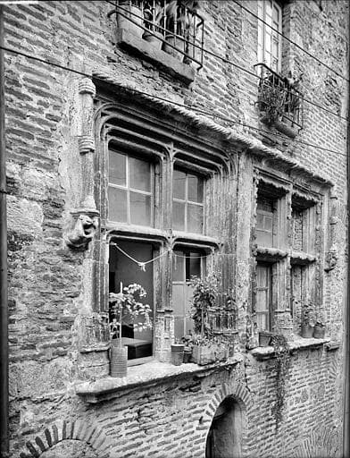 Cet édifice complet de la Renaissance, construit en briques, comportait à rez-de-chaussée de grandes arcades (murées) et au-dessus, deux groupes de fenêtres triples enrichies de sculptures. Le bâtiment prend jour sur une cour intérieure sur laquelle saillit un escalier en vis desservant à chaque palier les étages de la maison.
