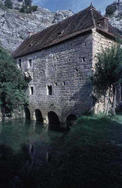 Ce moulin, mentionné pour la première fois en 1260, appartenait aux Cisterciens d'Aubazines en Corrèze. Construit, pour l'essentiel en pierre de taille, il porte les caractères d'éléments défensifs sur trois des côtés de la salle des meules et sur la façade méridionale, notamment deux meurtrières vraisemblablement d'origine. L'intérieur en pavement de galets est équipé de quatre paires de meules entraînées par des rouets en bois. Le système de commande des vannes par treuil en bois est exceptionnel. Quelques signatures de meuniers (datées 1778, 1779, 1907) sont portées sur les embrasures des ouvertures. Le moulin a fonctionné jusqu'en 1959 ; dans un parfait état de conservation et d'entretien dans la tradition et le respect des matériaux des mécanismes, ce moulin conserve toujours son contingent d'écrasement de 1535 quintaux accordé en 1936. Témoin exceptionnel de la meunerie préindustrielle, il est ouvert au public depuis 40 ans et propose des démonstrations de mouture d'avril à septembre.