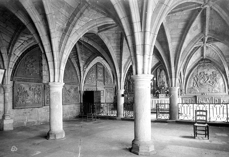 La chapelle fait partie intégrante de l'église Saint-Sauveur, étant attenante au transept sud. Son sol est en contrebas de celui de l'église. Les colonnes divisent la chapelle en trois nefs égales. La chapelle est couverte de voûtes d'arêtes comportant des arcs doubleaux, des arcs d'ogives brisés par des clefs et des liernes se croisant sur ces clefs. Les cloisons formant les trois arcades ainsi que les baies ogivales qui y sont établies, sont de construction certainement récente. Etant donné les vestiges anciens bien conservés, il apparaît que cette reconstruction est fidèle à l'état ancien.