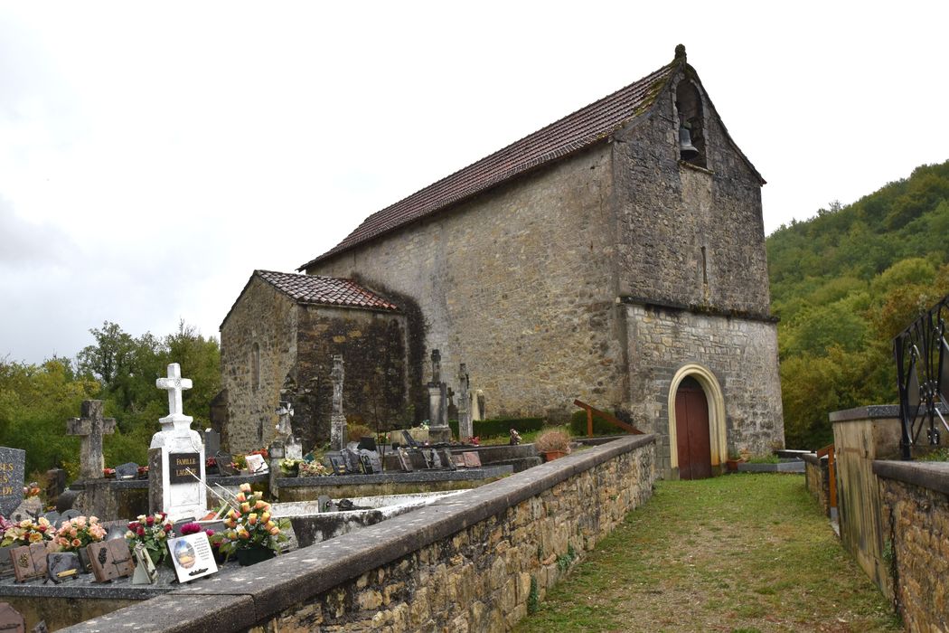 L'église appartient au prieuré voisin de Molières. Petit édifice à nef unique, terminé par un choeur voûté en cul de four orné de peintures gothiques. Sur la voûte de l'abside se voit un Christ d'aspect byzantin montrant ses plaies et entouré du trétramorphe, attribué au 13e siècle. Sur les murs, datant vraisemblablement du 14e siècle, se trouvent à droite l'Annonciation, à gauche les rois mages portant leurs présents à l'Enfant Jésus. Deux chapelles donnent à l'église la forme de la croix, avec des fresques visibles sous l'enduit du transept sud. L'ancienne entrée se situait au sud.