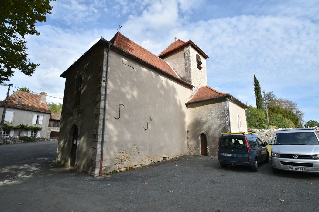 Epoque romane : choeur et croisée du transept, quatre colonnes et leurs chapiteaux sculptés, fenêtre du côté nord de l'église donnant accès aux combles et au clocher. Le clocher quadrangulaire s'élève sur la croisée du transept. Les murs est et ouest du clocher sont à pans de bois avec garnissage en pierres, briques et mortier.