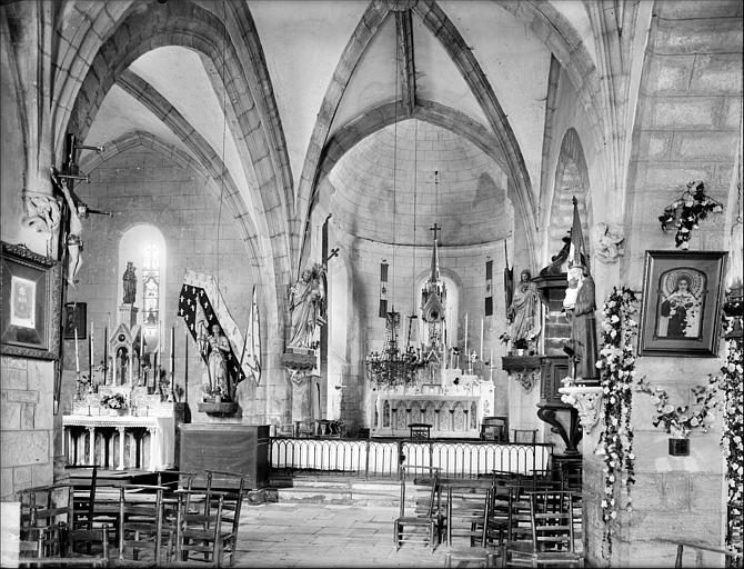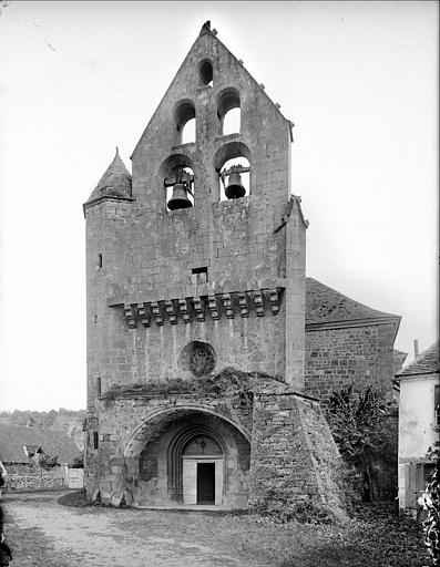 Hormis l'abside qui est romane, le reste de l'édifice semble remonter au 15e siècle. Clefs et retombées d'arcs sculptées. La façade est garnie de mâchicoulis et surmontée d'un campanile percé de cinq arcades superposées ajourant le pignon. Un escalier dans une tourelle polygonale permet d'atteindre le rang de mâchicoulis et le bas du pignon. Restes de peintures murales.