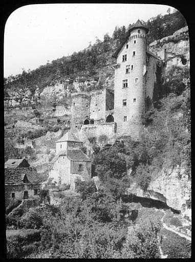 Castrum du 13e siècle. Enceinte développée au 14e siècle. Construction du nouveau château dans la deuxième moitié du 15e siècle, décoration vers 1515-1531. Aménagements au cours du 17e siècle. En 1793, disparition partielle du décor intérieur et démolition de la partie supérieure du donjon. A l'extérieur, les grottes servaient de caves ou de bergeries.