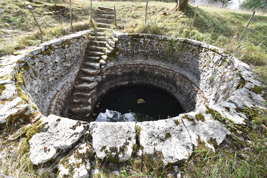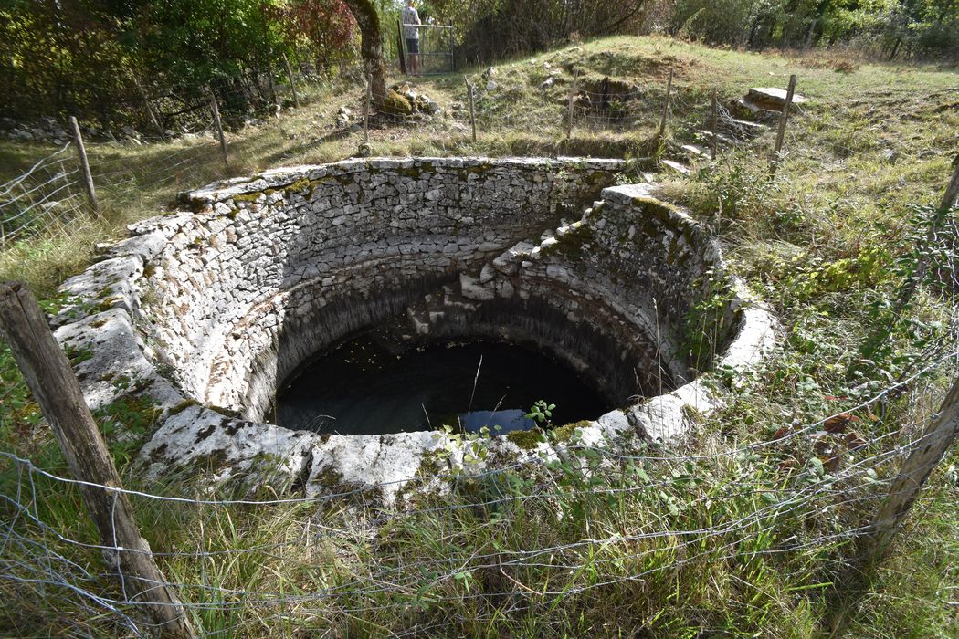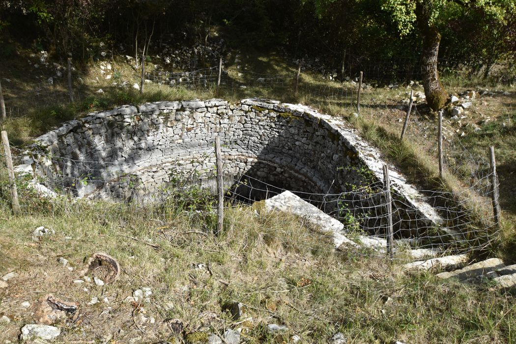 Puits de forme circulaire, d'un diamètre de six mètres, peu profond, avec des marches d'escalier le long de la paroi descendant jusqu'au fond. Des dalles larges, spécialement taillées, couvraient la partie supérieure de la paroi au niveau du sol. Un certain nombre d'entre elles a disparu.