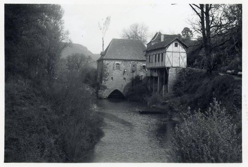 Ce moulin, attesté en 1317, conserve des parties du 15e siècle. Il est restauré au début du 18e siècle. Une dizaine de meules servent, avec des galets, de pavement à la salle du rez-de-chaussée. Trois paires de meules fonctionnaient encore en 1927 et une quatrième faisait tourner une fabrique de robinets en bois, près du moulin. En 1932, on remplace une paire de meules par un engrenage avec renvoi d'angle pour actionner, à l'étage, un broyeur Lafon et un convertisseur double Bulher. Le moulin est transformé en 1956 en minoterie hydraulique : les machines à blutter, à l'étage de comble, sont remplacées par un plansichter Cesbron, une brosse à blé et une brosse à son Lafon ; à l'étage, l'ancien matériel fait place à trois machines à cylindres Bulher. Un moteur diesel d'appoint de 15ch est installé à l'entrée du moulin pour compenser la perte de puissance en période de hautes eaux, deux paires de meules continuant toujours à à broyer des céréales pour les bestiaux. Le moulin cesse son activité en 1966. Il ne subsiste que les cuves, deux paires de meules, quelques engrenages et poulies d'entraînement ainsi qu'un système de 5 volants à crémaillère qui commande les vannes. Une paire de meules, restaurée en 1999 sert de démonstration de mouture lors de la journée nationale des moulins. Le moulin est aujourd'hui maison d'habitation.