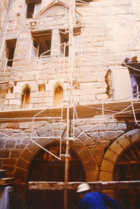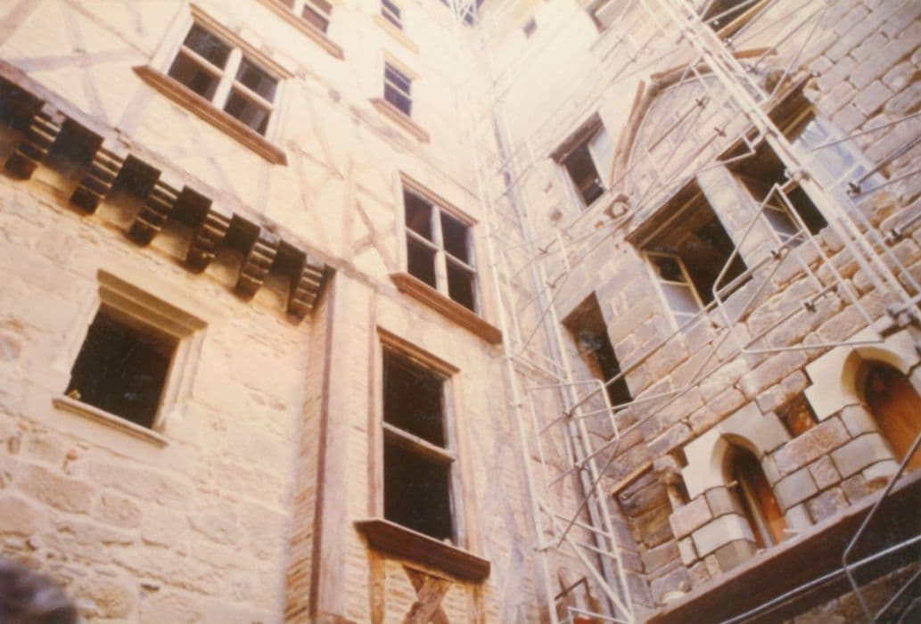 Ensemble organisé autour d'une cour intérieure, comprenant trois corps de bâtiments. La maison possède les éléments caractéristiques de l'architecture civile figeacoise : une succession de grandes arcades brisées ouvrant sur la rue au rez-de-chaussée ; un étage de baies géminées à réseaux, séparé du second étage par une corniche ; un souleilho sous le toit. La maison était constituée à l'origine de deux bâtiments qui ont été unifiés au 14e siècle. Les façades sur cour, dont une en pans de bois, présentent des éléments de la fin du 15e siècle. La façade latérale possède des éléments du 14e siècle. L'ensemble a été remanié aux 15e et 18e siècles. Projet de centre de recherche en écologie humaine avec centre de documentation sur le Quercy et les Templiers. Etape sur la route de Saint Jacques de Compostelle.