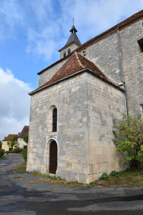 L'église était primitivement un prieuré rattaché à la chantrerie de l'abbaye de Marcilhac. L'église se compose d'une nef terminée par un choeur semi-circulaire. Deux chapelles latérales sont accolées au sud (19e siècle) et au nord, à l'entrée du choeur. La façade occidentale est dominée par un haut clocher. L'édifice a été fortifié au 14e siècle : deux consoles sur le mur sud devaient soutenir des mâchicoulis. Il semble que durant la guerre de Cent as, une salle refuge ait été aménagée sur l'extrados des voûtes. Le mur du maître-autel est orné de peintures du 16e siècle.