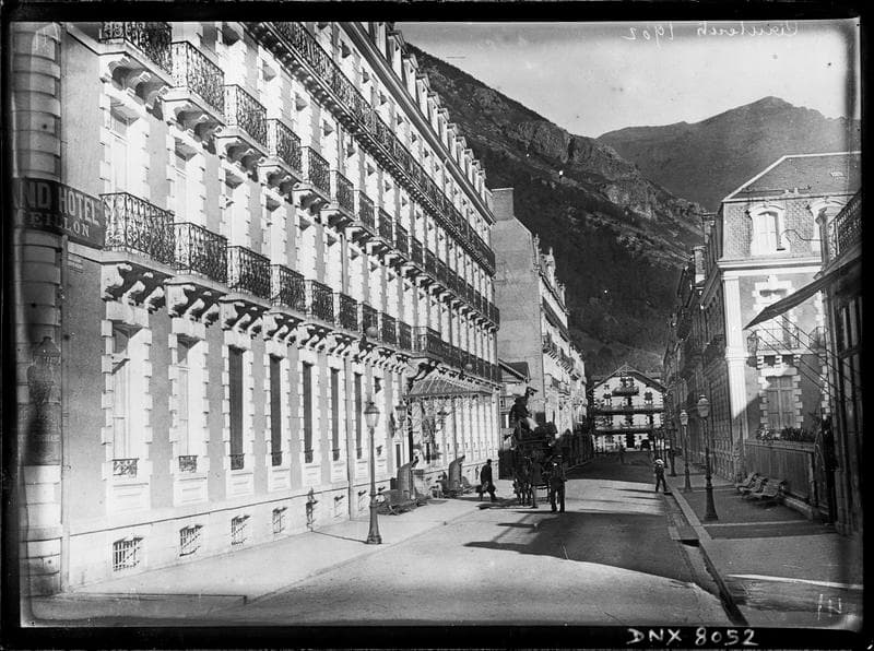 A partir de 1820, l'architecture thermale se construit à grande échelle. Des immeubles sont bâtis pour accueillir les curistes. De puissantes familles tarbaises ou paloises construisent des hôtels dans la ville. L'hôtel d'Angleterre fut construit en 1879 par Alfred Meillon, ancien cuisinier de la cour d'Angleterre. Il comptait 300 chambres, dont 100 avec salle de bains ainsi qu'un ascenseur hydraulique. L'édifice est construit sur une cave et comprend un rez-de-chaussée et quatre étages. Il est coiffé d'une large coupole circulaire au tambour ajouré de baies. La façade, entièrement en pierre de taille, comporte une partie centrale ajourée de trois baies et deux avant-corps latéraux percés chacun d'une étroite fenêtre. Les parois murales sont rythmées par des arcades décorées de stucs dans le style Second Empire. Le dessin des portes reprend les courbes des grandes baies extérieures.