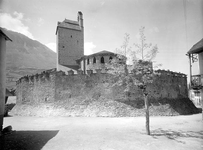 Edifice daté du début du 13ème siècle, d'après un texte gravé dans le porche portant la mention 1240 ou 1260. Au milieu du 14ème siècle, l'église passe aux Hospitaliers de Saint-Jean de Jérusalem. La nef et le chevet sont surélevés pour permettre la mise en place d'un chemin de ronde. La chapelle de la Vierge a sans doute été fondée entre 1420 et 1444, et possède un décor peint de cette date. Du 17ème siècle datent le maître-autel en bois doré, la chaire, une pieta polychrome et les toiles peintes. La chapelle Saint-Roch possède un décor mural de 1670. En 1736, l'ordre de Malte succède aux Hospitaliers. En 1876, le clocher est utilisé comme prison militaire. De cette époque datent le décor peint du retable de la chapelle Saint-Roch, ainsi que celui du cul-de-four. A la fin du 19ème siècle, une porte est percée au nord, face au portail roman.