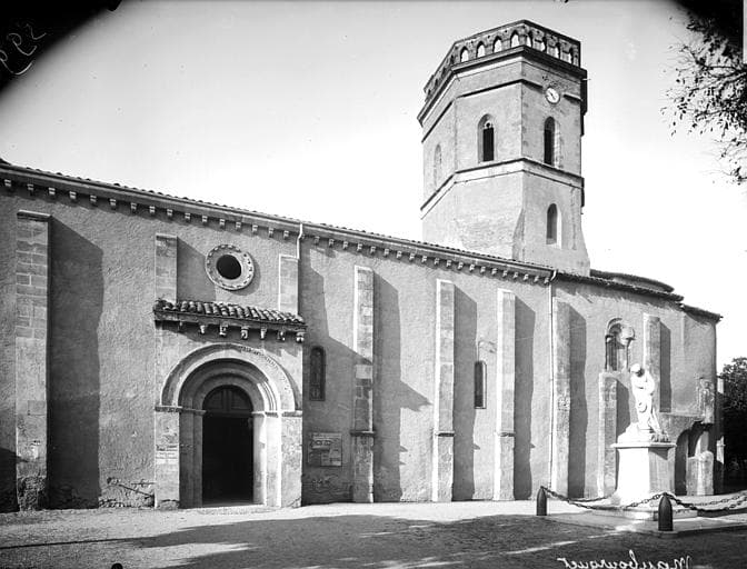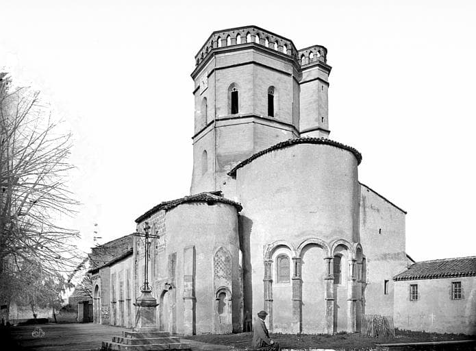 Monastère fondé par Héraclius au 11e siècle. L'église en est le seul élément subsistant et se compose d'une nef à trois travées, flanquée de bas-côtés, le tout prolongé par un transept non saillant et par l'abside et deux profondes absidioles. La croisée du transept a rçu une tour lanterne. De l'époque romane sont presque encore intactes l'abside et les absidioles. Leur désaxement par rapport aux éléments romans de la nef laisse supposer que plusieurs campagnes de travaux ont été réalisées entre le 11e et le 12e siècle. Au 14e siècle, les Anglais occupent et fortifient l'édifice (surhaussement de l'abside et des absidioles). A cette époque peut-être, la croisée du transept, qui était peut-être couverte par une coupole, reçoit une tour lanterne octogonale. Après les guerres de Religion, le monastère est en grande partie détruit et l'église endommagée (nef ruinée). Cette dernière est restaurée au 17e siècle, mais les moyens financiers ne permettent pas de lui rendre son volume antérieur. Les travaux du milieu du 19e siècle vont tenter de rétablir cet état.