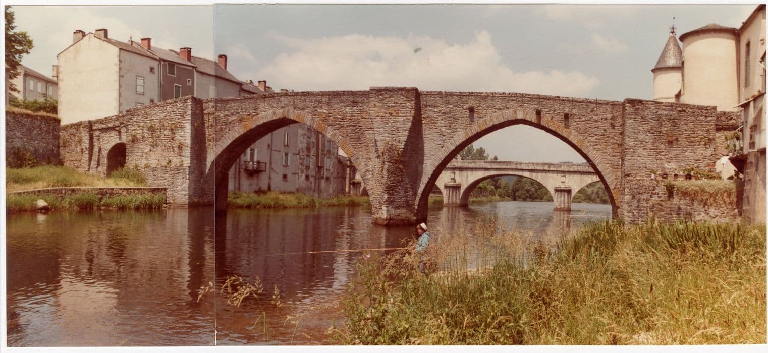 La construction se situe au 12e ou au 13e siècle. A cette dernière époque, l'usage du pont de pierre à dos d'âne utilisant l'arc brisé se généralise. Un relevé de 1770 indique que le parapet était plus élevé et que, côté rive gauche, se trouvait une sorte d'octroi sur la dernière pile. En 1839-1840, un nouveau pont est bâti parallèlement mais il est emporté par une crue en 1861. En 1867, le vieux pont est restauré et acquiert son état actuel. £L'ouvrage de type médiéval à dos d'âne est composé de deux grandes arches ogivales, flanquées de deux petites arches de rive en plein cintre. Il est rythmé par trois piles épaisses, cantonnant les arches, débordant d'un mètre à l'extérieur. Ce débordement se poursuit jusqu'au niveau du parapet, formant refuge. La pile centrale est précédée d'un avant-bec triangulaire effilé. Des corbeaux de pierre ont été placés le long du parapet en 1867 pour supporter un garde-corps en bois qui donnait plus d'ampleur à la chaussée. De cette même époque datent les anneaux de fer destinés aux tringles sur lesquelles étaient pendus les draps qui sortaient du foulon.