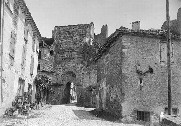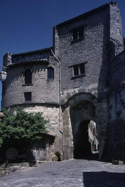 Porte située vers l'ouest de la première enceinte de la ville en partant du centre. Elle a été construite très probablement de 1222, date de la fondation de Cordes par le comte de Toulouse Raymond VII, à 1229 (au plus tard), époque où le "Traité de Paris" cite la bastide comme l'une des forteresses les plus importantes de l'Albigeois. Les parties basses des deux tours et la porte proprement dite jusqu'au-dessus de l'assise passant sur l'arc archivoltant le cintre extérieur, sont en calcaire. Le surplus est en maçonnerie de pierre schisteuse pour les murailles et en grès pour les encadrements des baies. Cette réfection de la partie supérieure, sans doute due à une destruction, paraît dater de la fin du 13e ou du début du 14e siècle. Des réfections du 14e siècle subsistent deux étages au-dessus du passage et un étage à la tour de gauche. La tour de droite a presque entièrement perdu les parties remontant au 14e siècle et porte un jardin en terrasse. Le rez-de-chaussée conserve les rainures de deux herses. Une porte massive en bois devait compléter le système défensif.