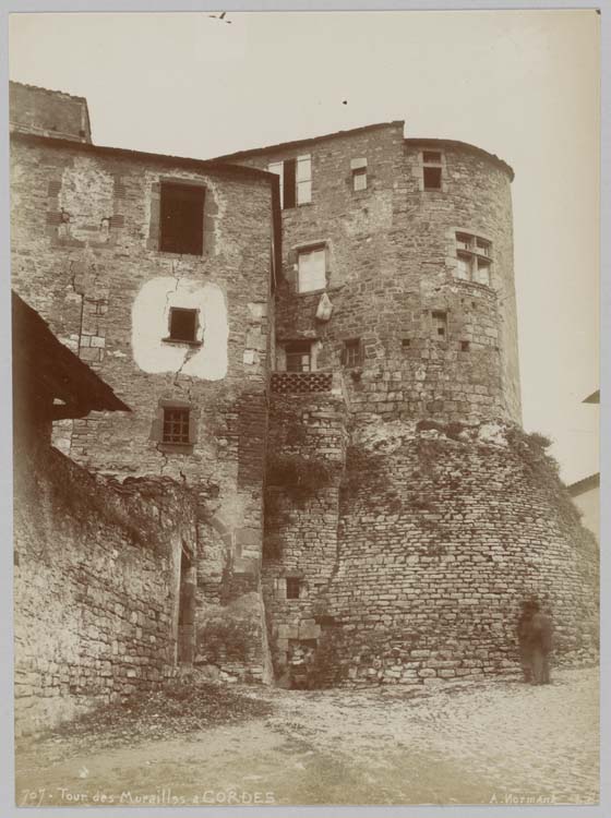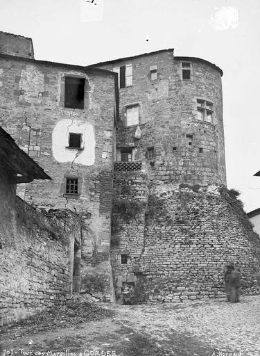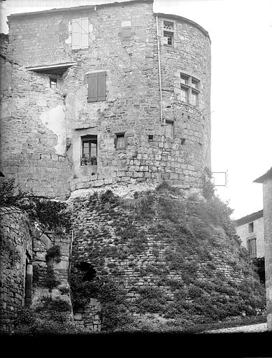 Haute tour de pierre circulaire portée sur un fort empattement en maçonnerie, se rattachant à la troisième enceinte de la ville et en défendant l'approche. La tour, aujourd'hui découronnée, est éclairée par une fenêtre en croix du 15e siècle. Une fausse tour lui fait suite vers l'ouest.